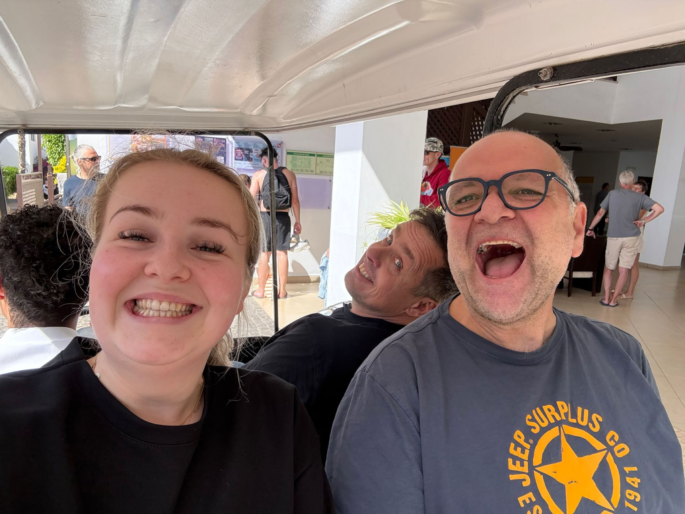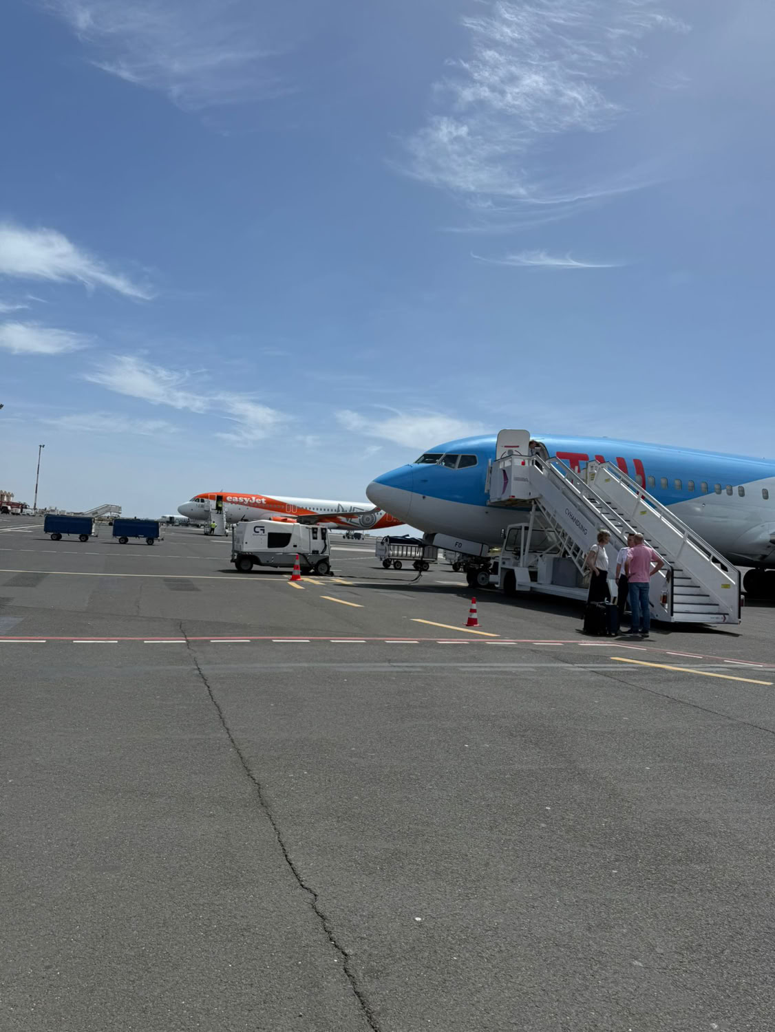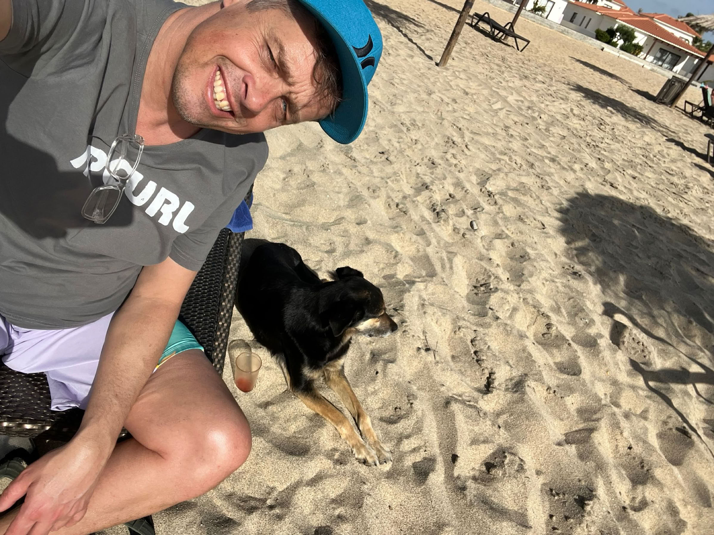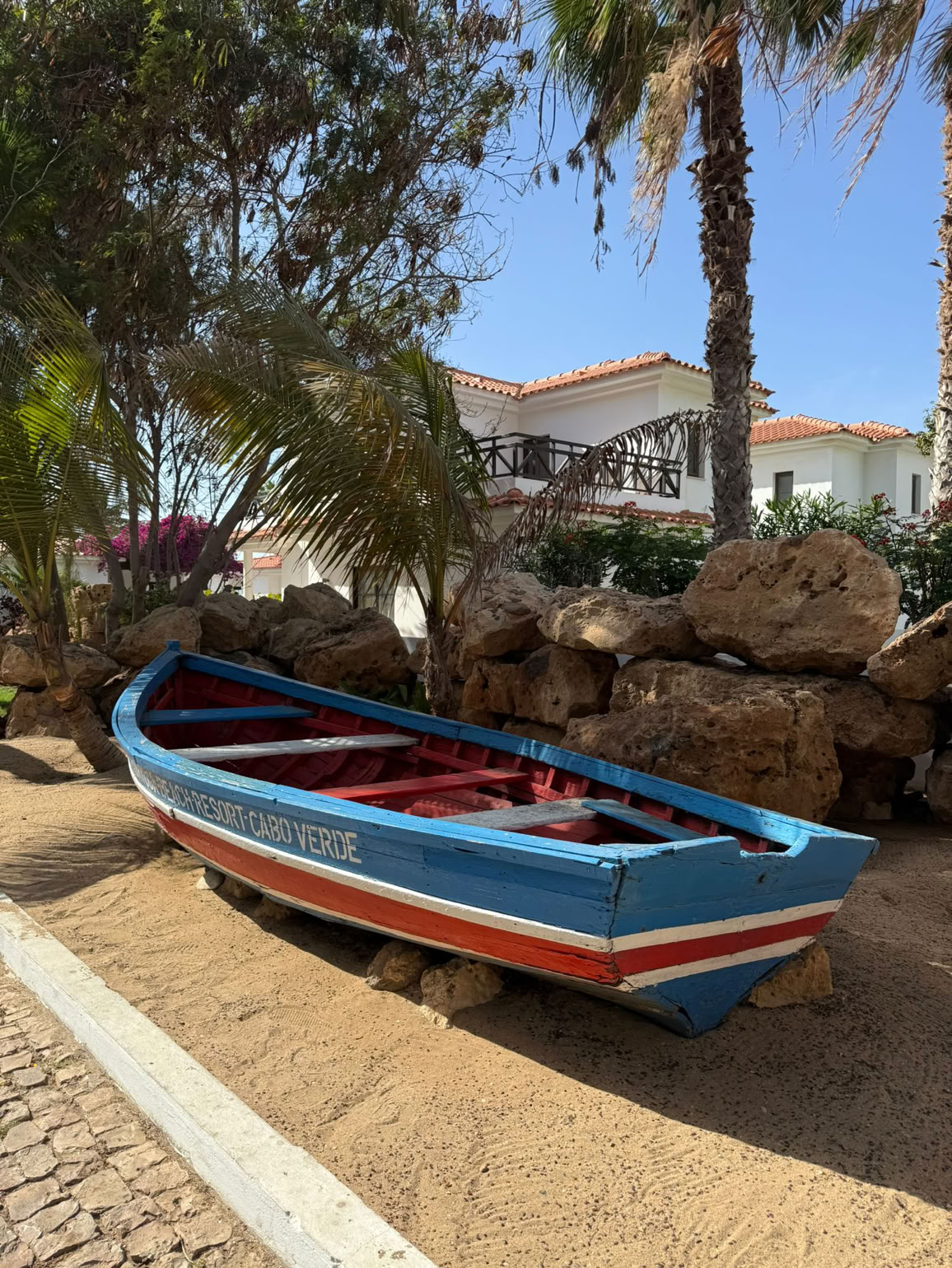 Na een uur aan de grond d te hebben gestaan zijn we opgestegen naar Ilho de Sal. Onze eindbestemming. De vlucht was 1 uur en 15 minuten. Er stond al een behoorlijke wind dus de landing was stevig. Op Sal moet je luchthavenbelasting betalen en formulieren van te voren invullen zodat je makkelijke door de douane kunt. Dat hadden we allemaal van te voren goed geregeld. Eenmaal door de douane zijn we naar de bagageband gelopen. En onze koffers kwamen er al aan. Super snel. Onno had en taxi geregeld voor al onze spullen. Taxi chauffeur was er nog niet. Dus even appen en tien minuten later was hij er ook. Het is heerlijk weer. Niet te warm en zeker niet te koud. De chauffeur heeft ons naar Melia Tortuga Beach gebracht. Een groot complex aan de rand van Santa Maria. We werden erg vriendelijk ontvangen. Alles snel geregeld bij de receptie. Met een golfkarretje werden we richting onze kamer gebracht. Een ruim opgezette kamer vlakbij het zwembad en niet ver van de zee. Onze koffers uitgepakt en gezamenlijk naar de zee gewandeld. Daar ons eerste drankje bij de beachbar gedaan.