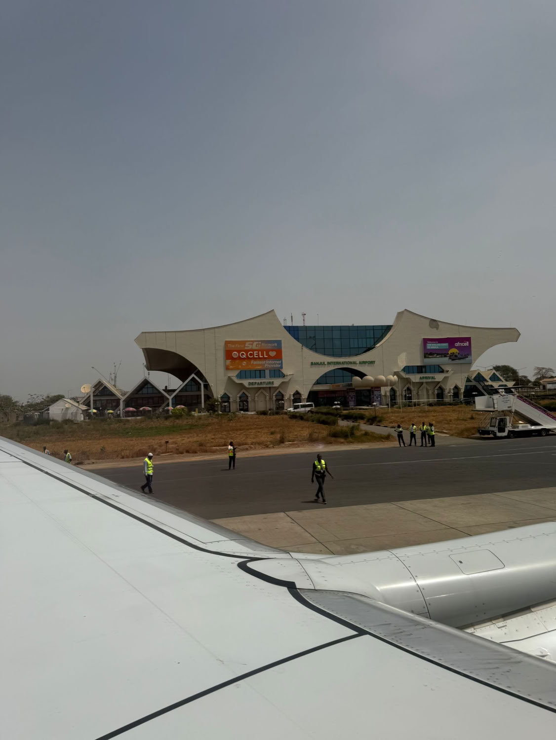 Het is een gecombineerde vlucht, dat wil zeggen dat er een tussenstop is. En die zit voor ons op de heen weg. De tussenstop is in Banjul Gambia. De reistijd was iets langer dan normaal omdat we eerst een stukje richting Engeland moesten vliegen vanwege de drukte in Europa en vervolgens hadden we wind tegen. In totaal hebben we er 6 uur en 16 minuten over gedaan. Op de luchthaven Banjul waren wij het enige vliegtuig. Alles passagiers die naar Gambia gingen stapte uit en vervolgens de mensen die terug naar Amsterdam moesten kwamen er weer in.