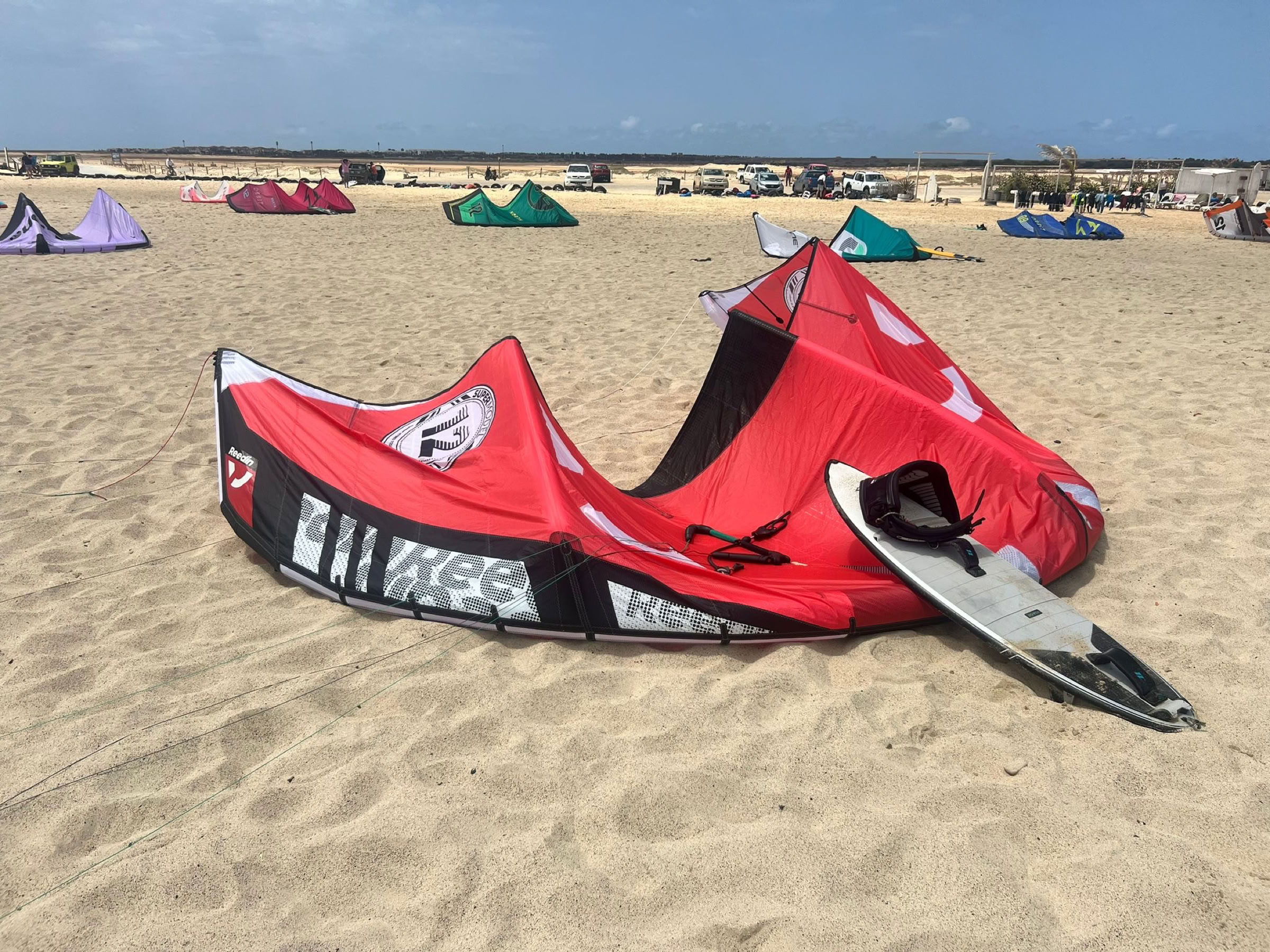 Nu nog even terug naar de zaterdag, onze 8ste dag op dit resort. Het was een warme dag met al een stuk minder wind dan de dagen er voor. Na het ontbijt heeft Onno toch besloten om naar het kitestrand te gaan om te kijken of hij nog even in het water kan gaan spelen. Gelukkig stond er nog net genoeg wind om met zijn 12 meter te kunnen varen.